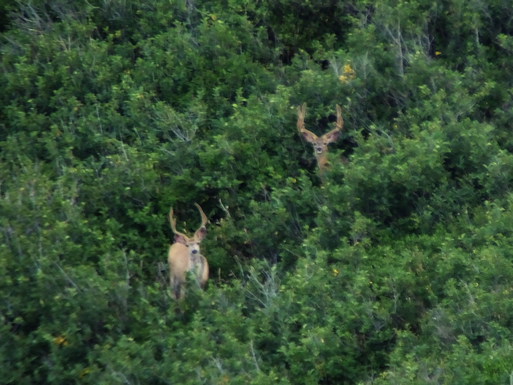 That evening we glassed a couple of small bucks and several does below us for an hour or so before dark. Nothing big but it still got us excited for what we might see in the morning. Just before light we rolled out of our sleeping bags and were waiting on the cliff watching the canyon waiting for it to get light. Just as it got light two hunters popped up behind us wanting to hunt from the cliff we were on and one hunter spent the morning sitting 30 yards to our left and the other 200 yards across a saddle from us. Public land during the rifle hunt in Northern Utah is very crowded.