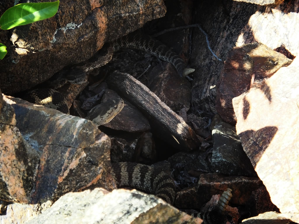 On the way out climbing over a boulder field, I almost put my hand next to two rattlesnakes. Eeks! That will get the heart pumping. The one snake was pretty good-sized for a Utah rattler.