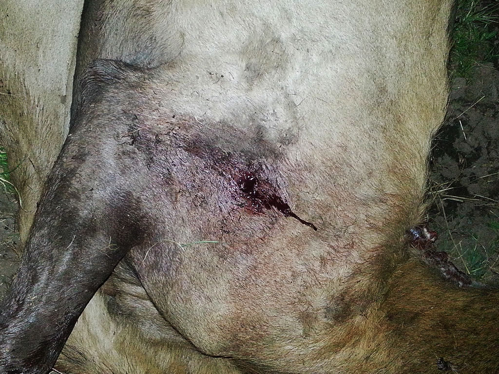 After boning out one side of the elk I flip it over to see the entry hole made by the Rocket Sticknine broadhead.